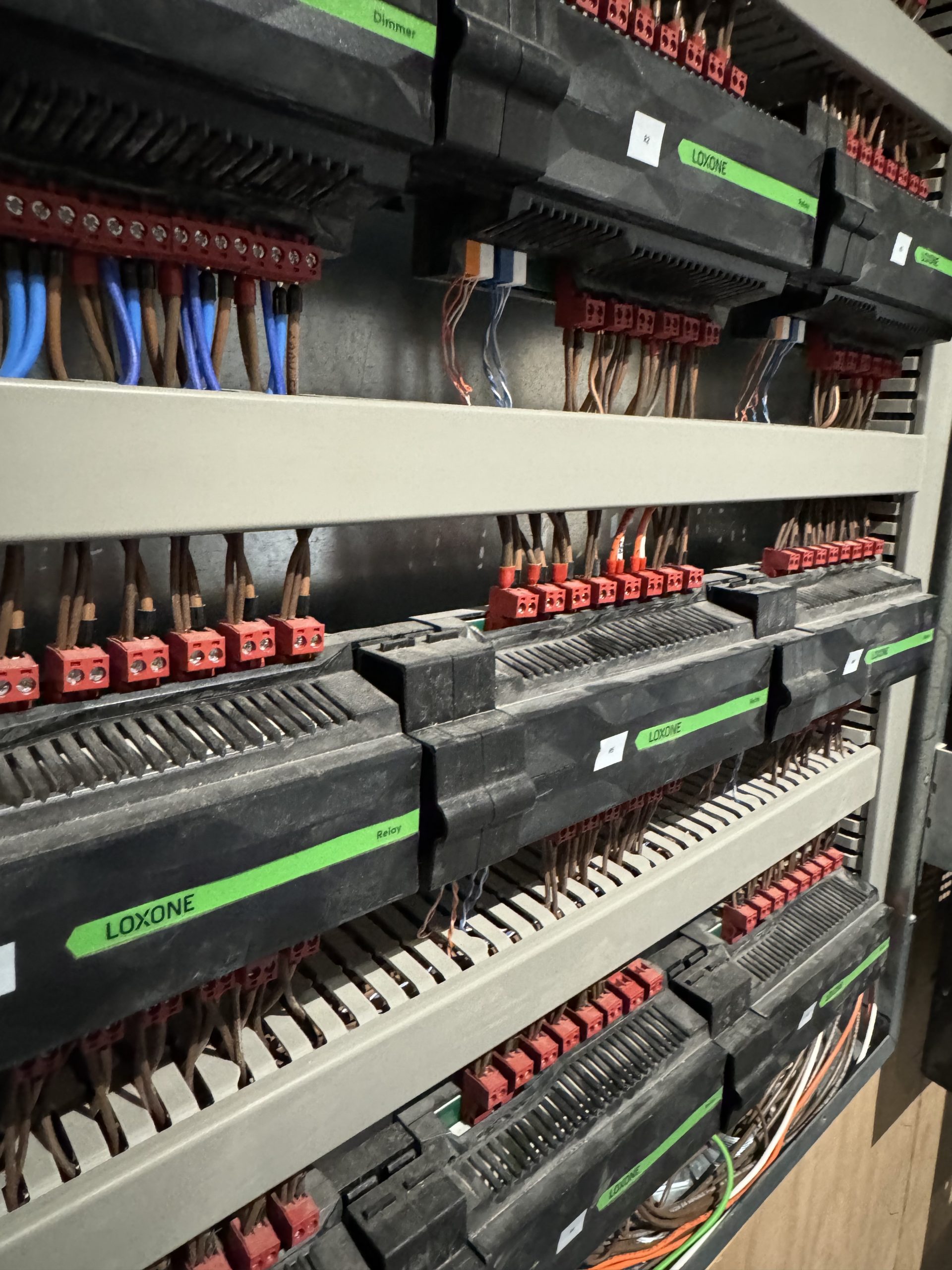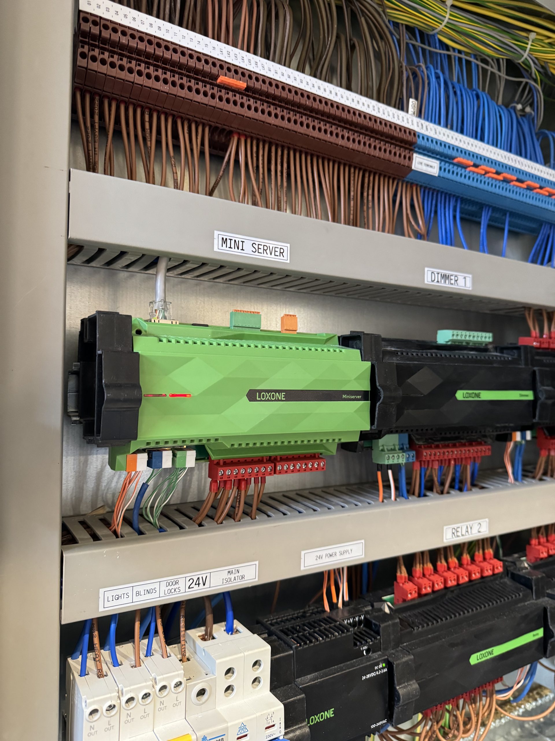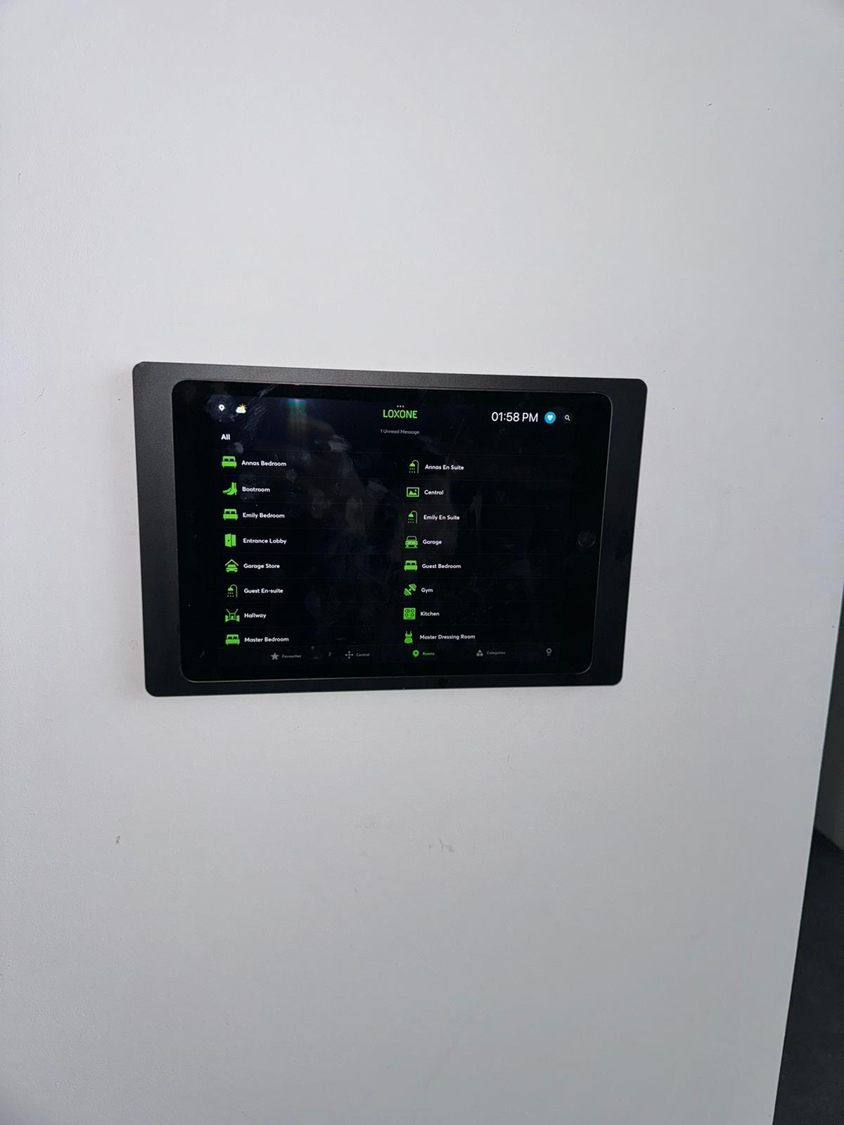 This new build property was built on an old farm. Its name was inspired from the cladding that wraps the upper ground floor of the property that will age to a silver colour. The open plan kitchen and living area is located at the centre of this amazing home and really delivers the wow factor. This smart home project is contolled by the powerfull Loxone home automation system. We installed this system to control the lighting, heating, multiroom audio, control of the blinds, locking and unlocking of all the doors, security, and automation of the electric gates. Each family member has there own code and NFC tag to enter the house. They also have access to the app to control the various aspects to the house. There is a central screen in the open plan which gives control of every room. Each room has a Loxone pad which controls lighting scenes, the blinds, audio and also the heating. The system also monitors sound and movement in the rooms so when the client leaves the room the lights and music will turn off. When the client returns to the room the lighting and music resumes.