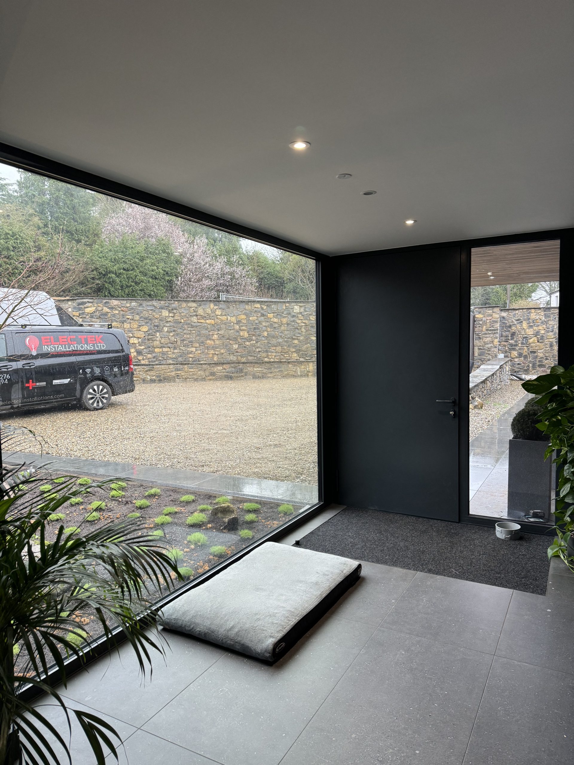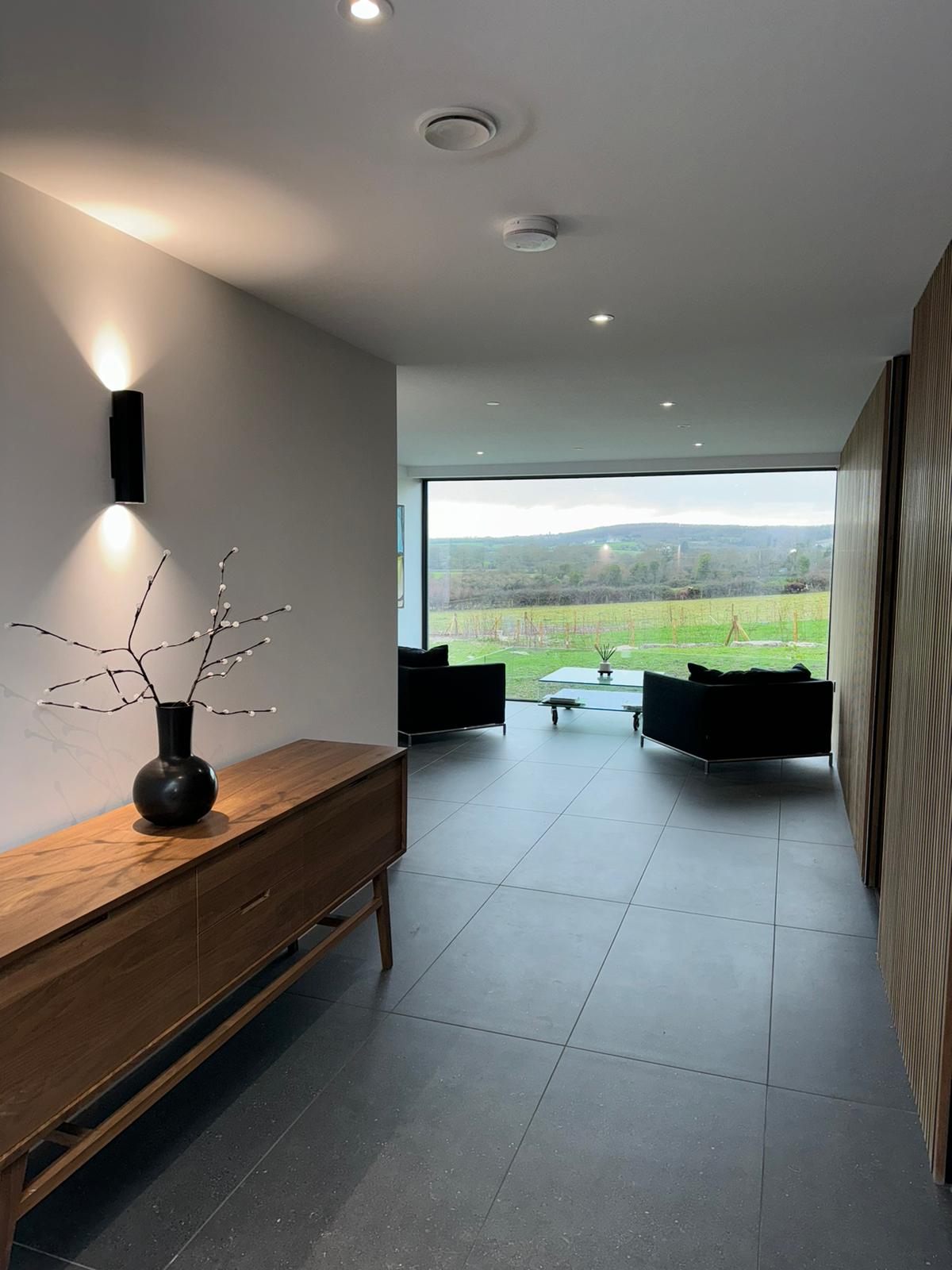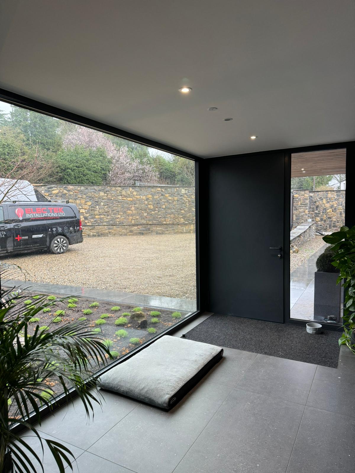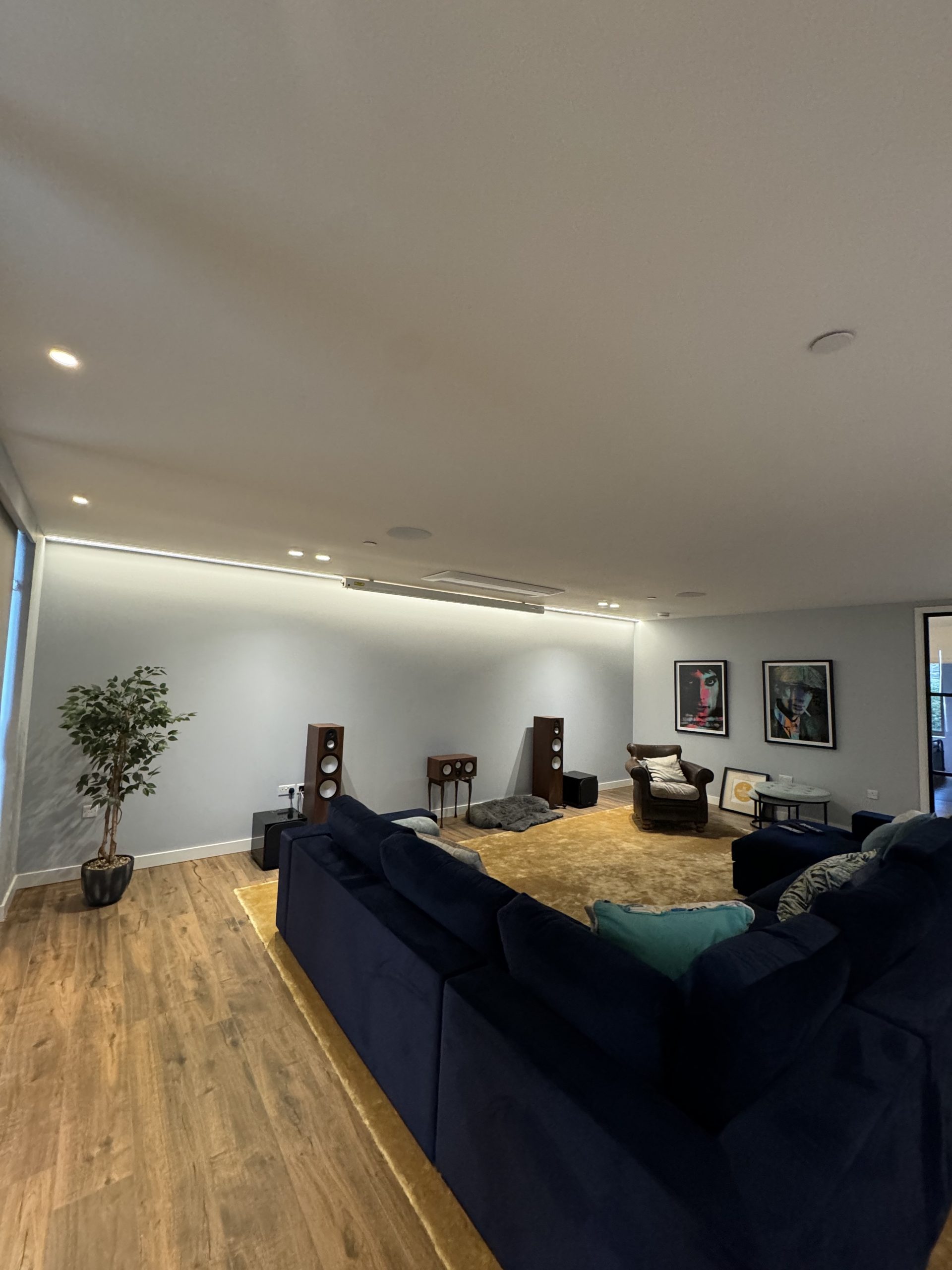 We carried out the installation of lighting, power, heating control, data, home wifi network, EV charging, upgrade to the incoming supply for an additional 100amp supply and a new home cinema.