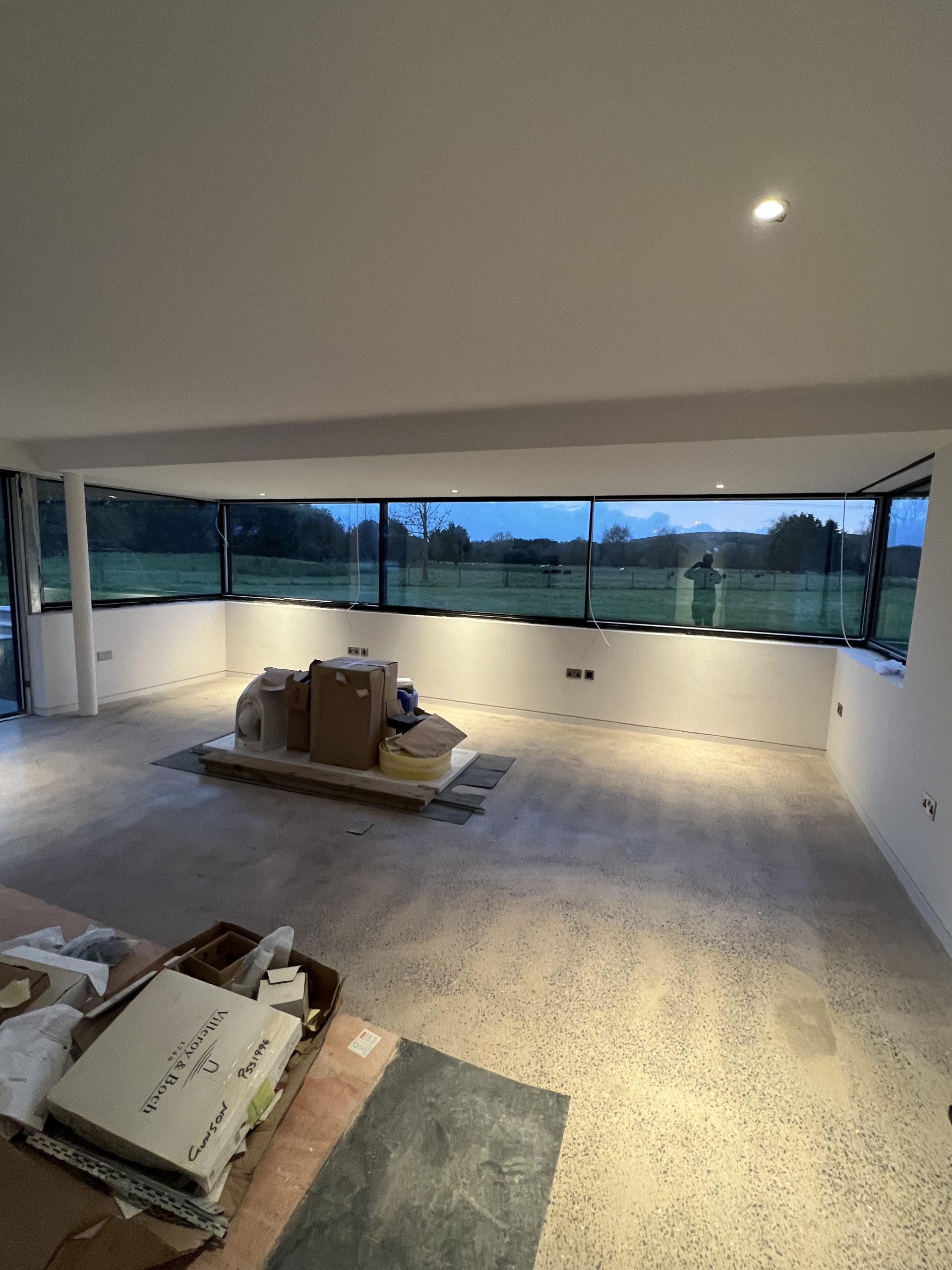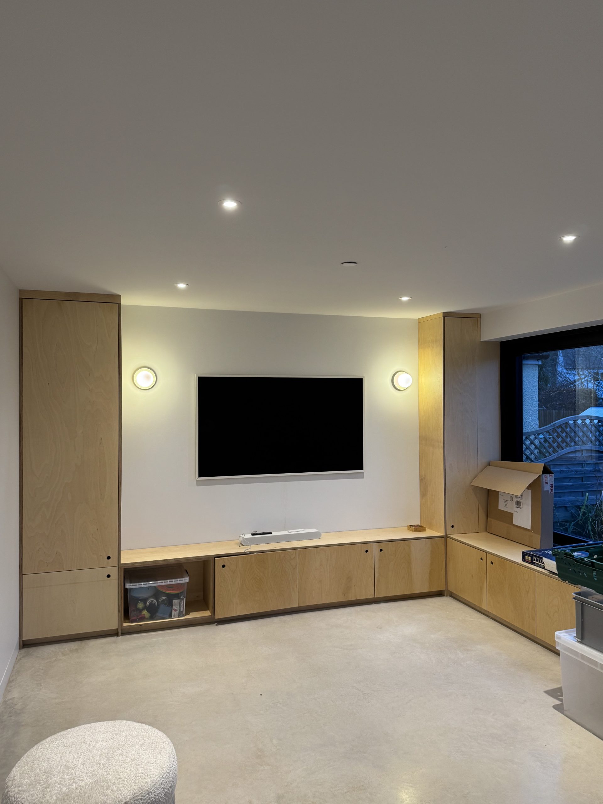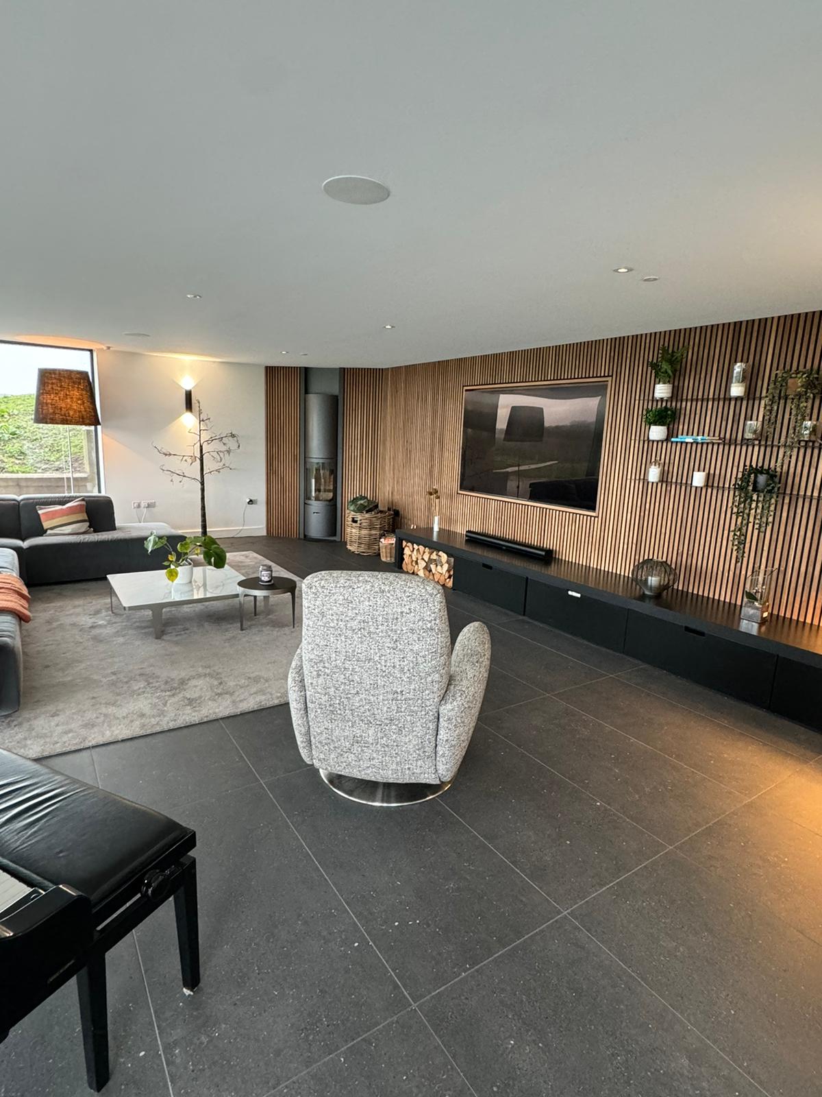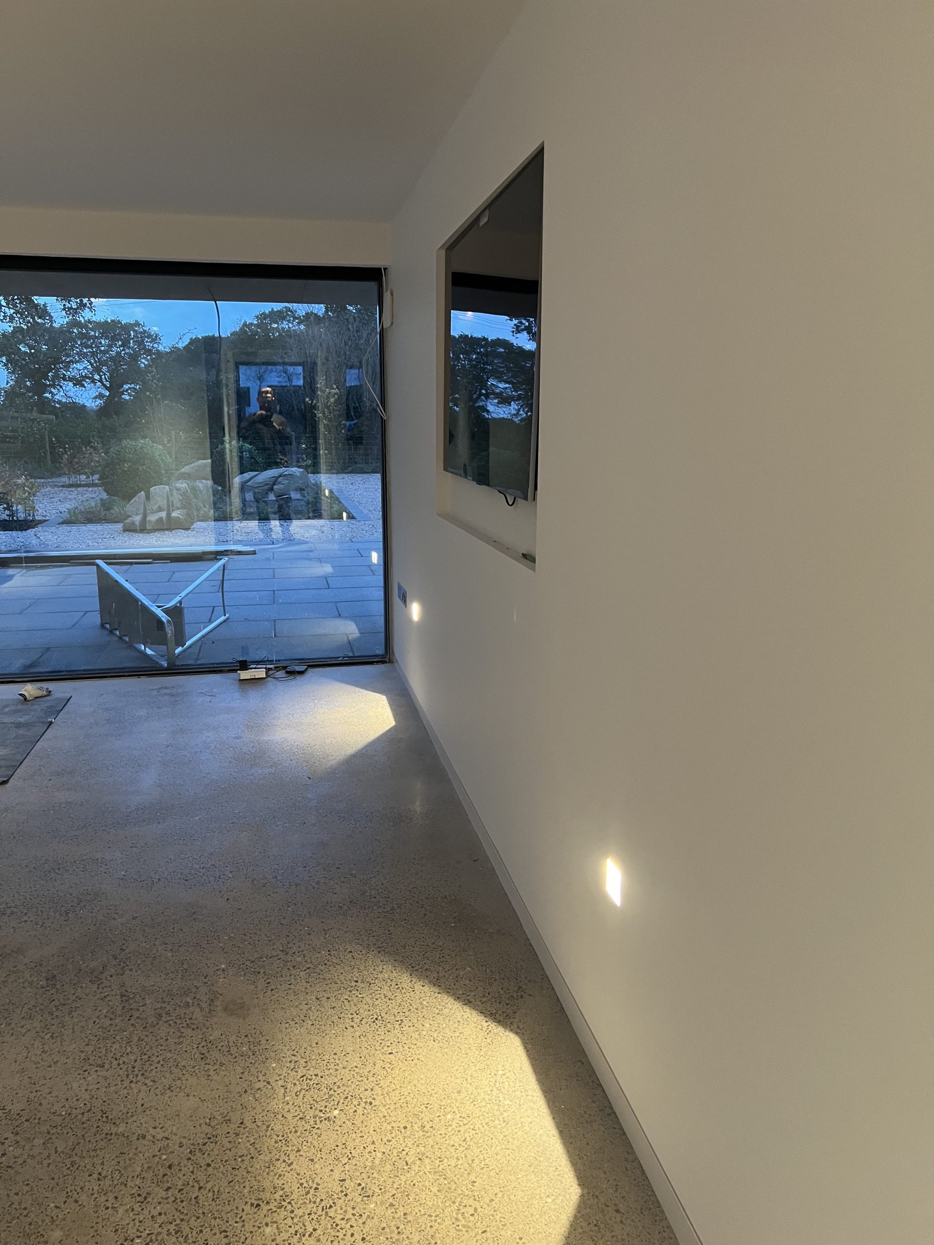 We carried out the installation of lighting, power, heating control, data, home wifi network, EV charging, upgrade to the incoming supply for an additional 100amp supply and a new home cinema.