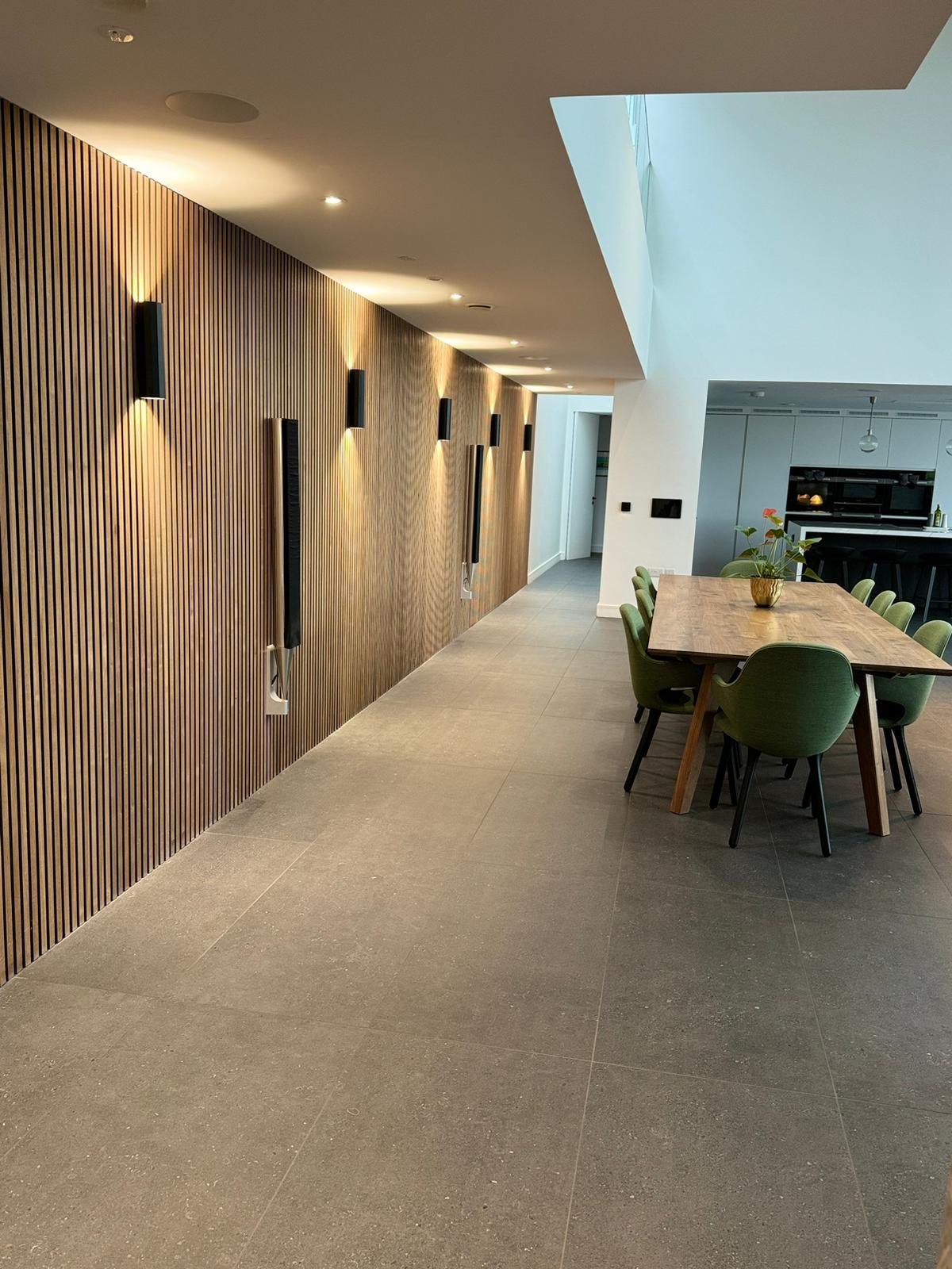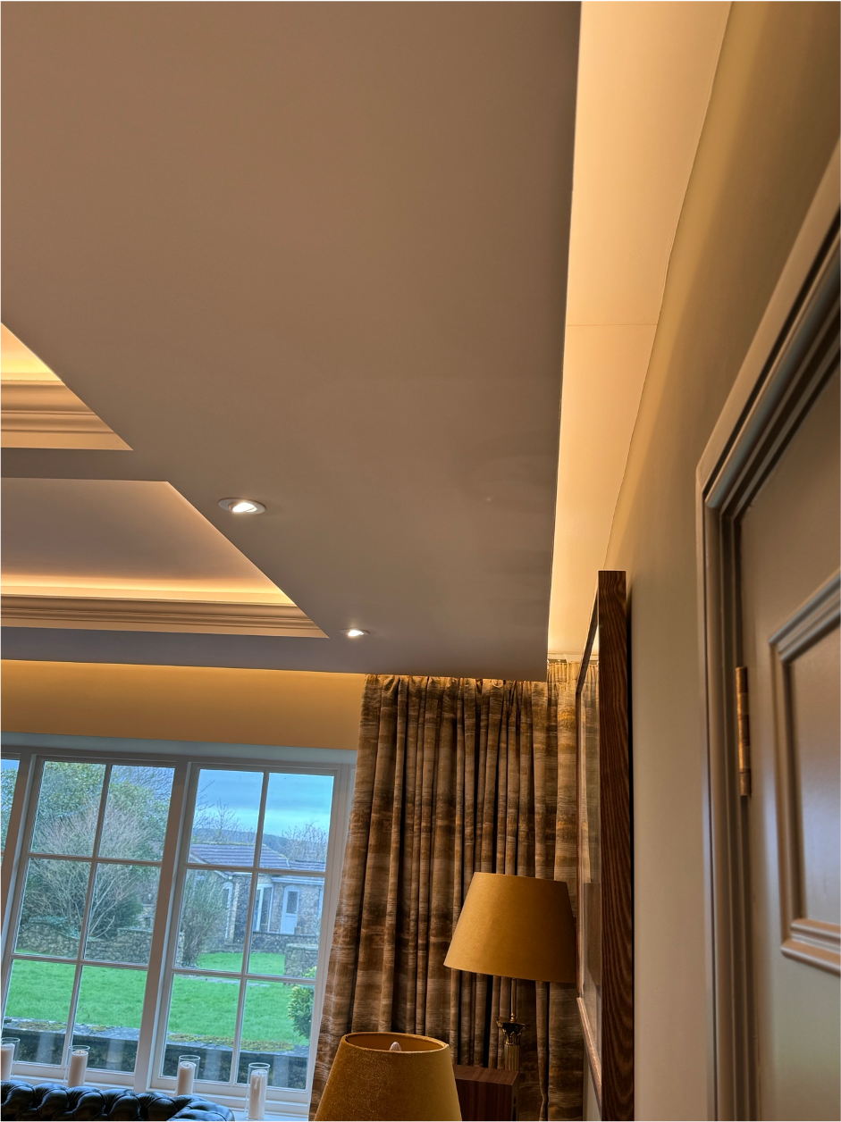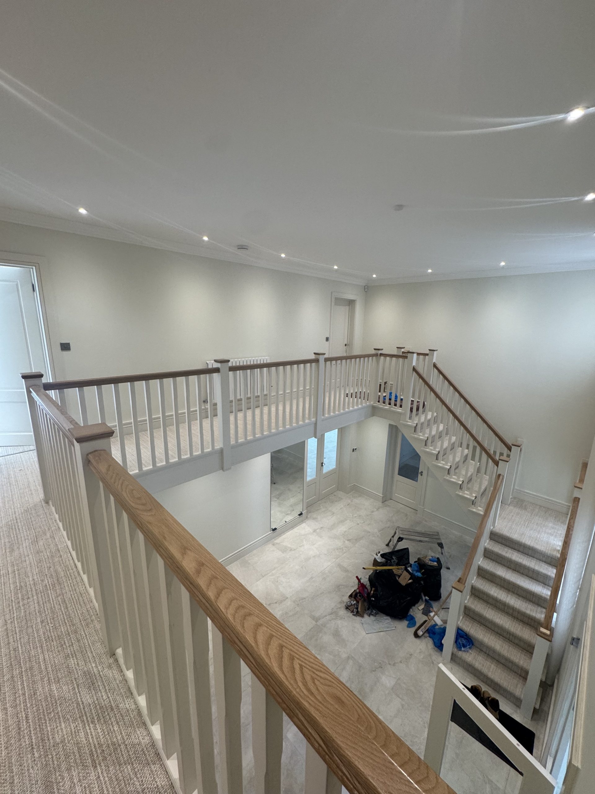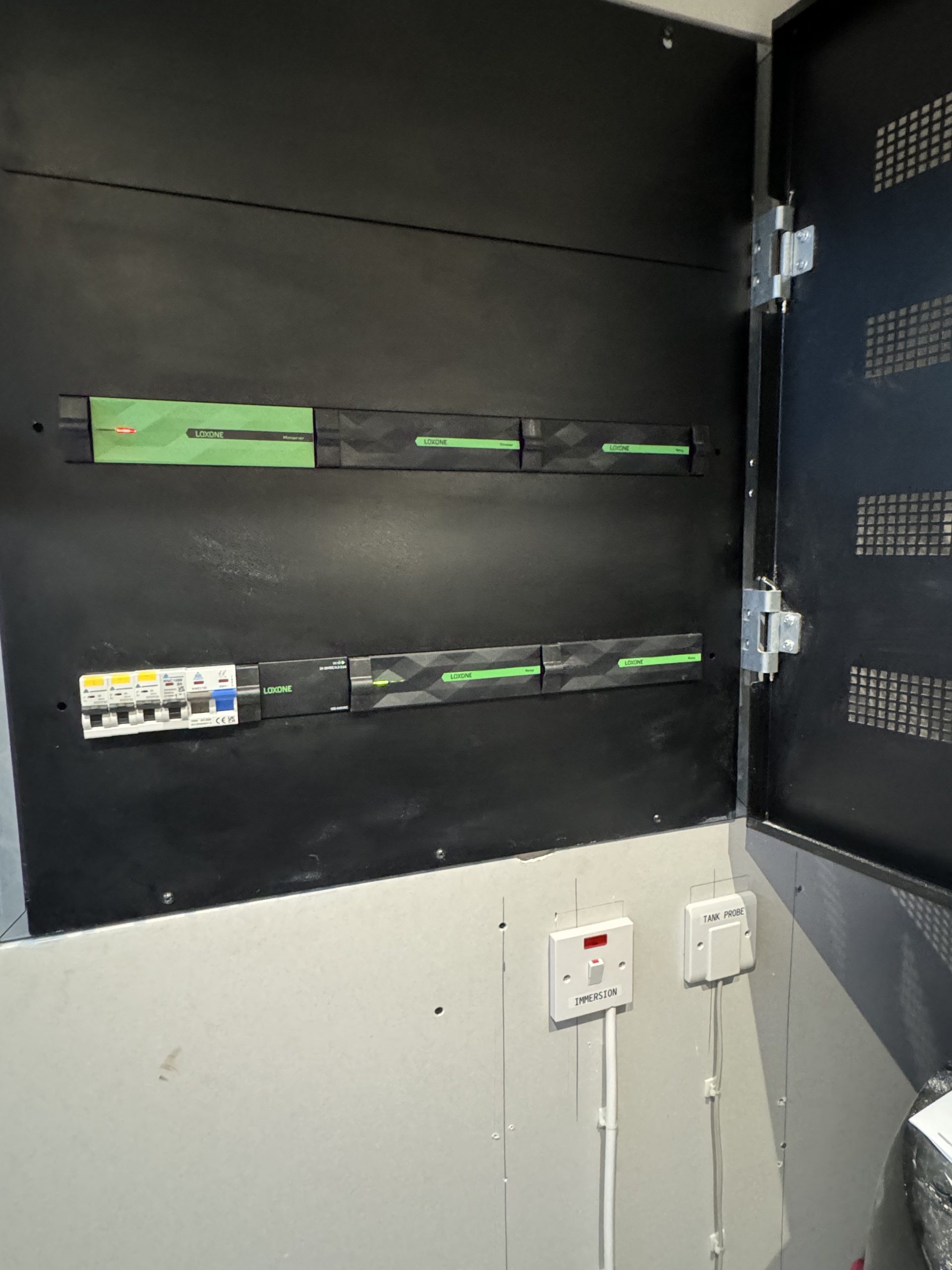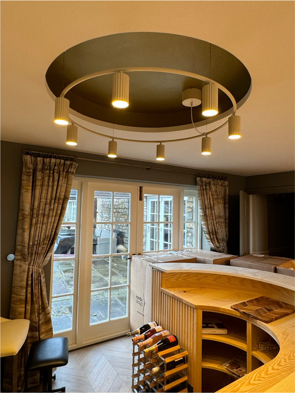 We carried out the installation of lighting, power, heating control, data, home wifi network, EV charging, upgrade to the incoming supply for an additional 100amp supply and a new home cinema.