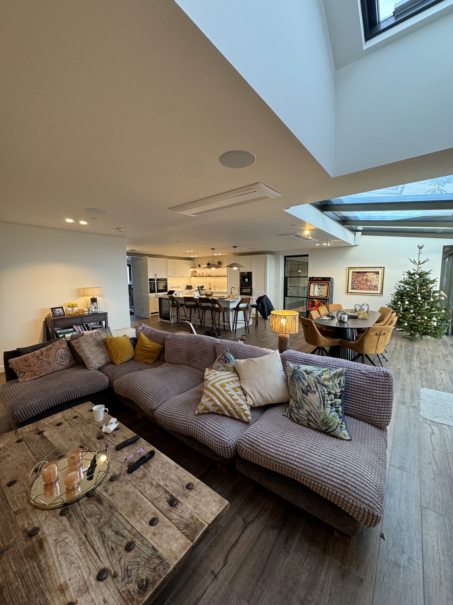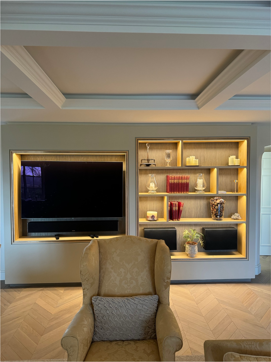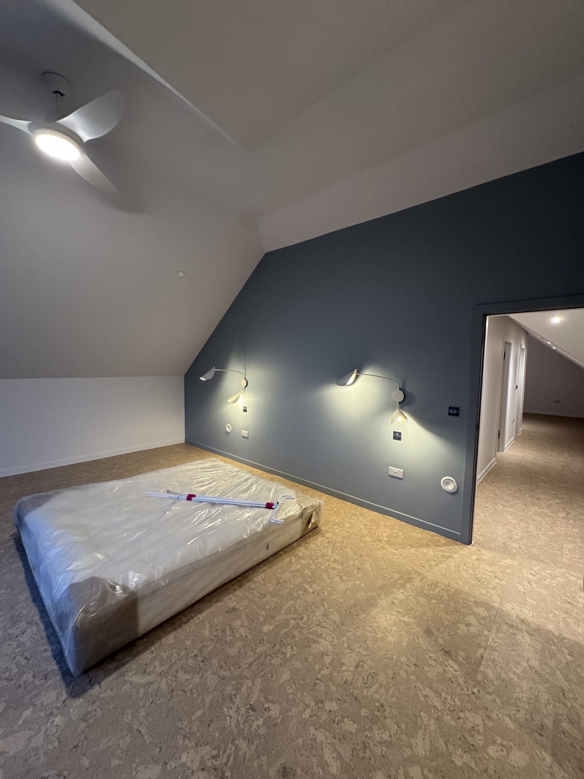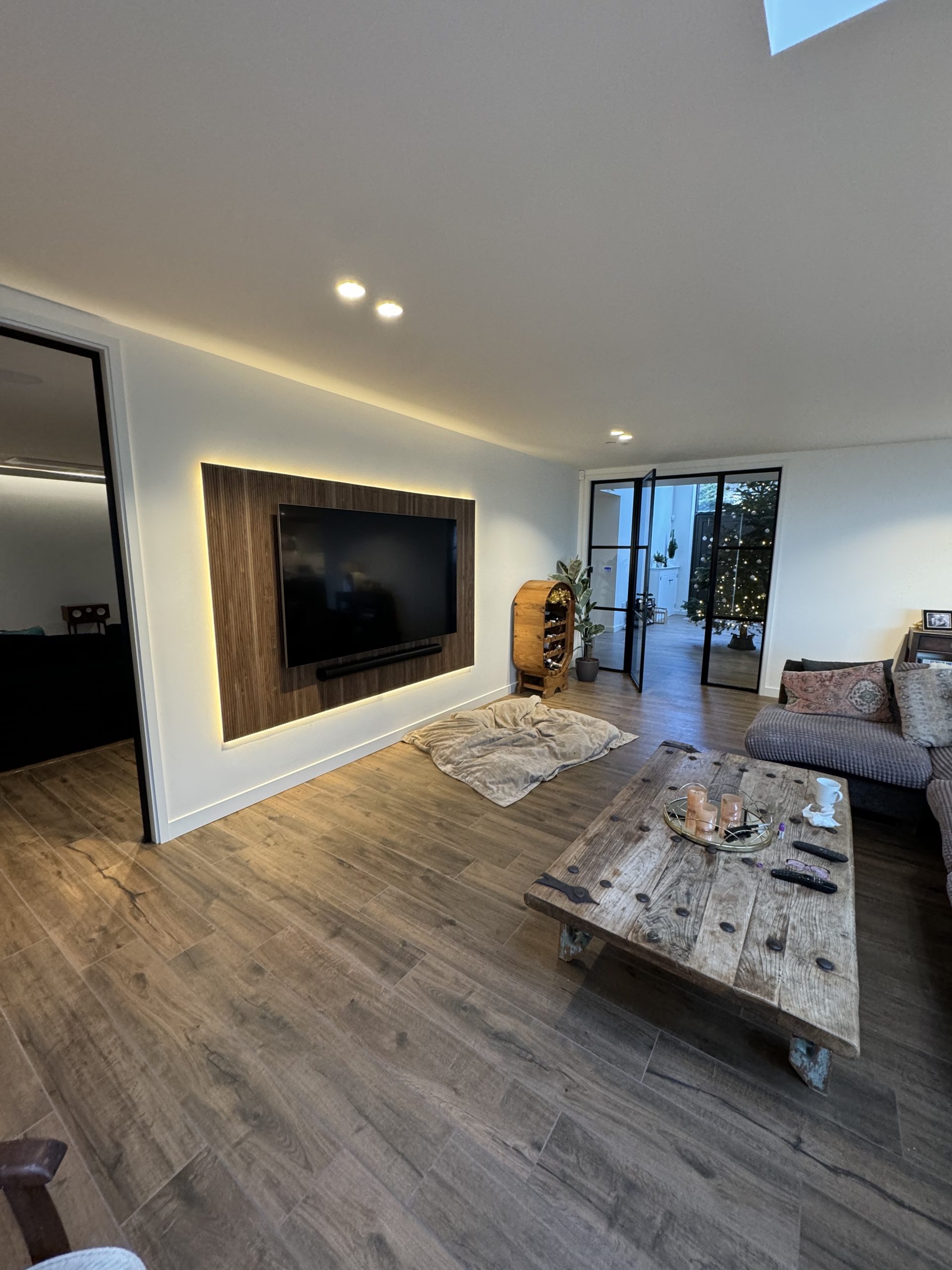 We carried out the installation of lighting, power, heating control, data, home wifi network, EV charging, upgrade to the incoming supply for an additional 100amp supply and a new home cinema.