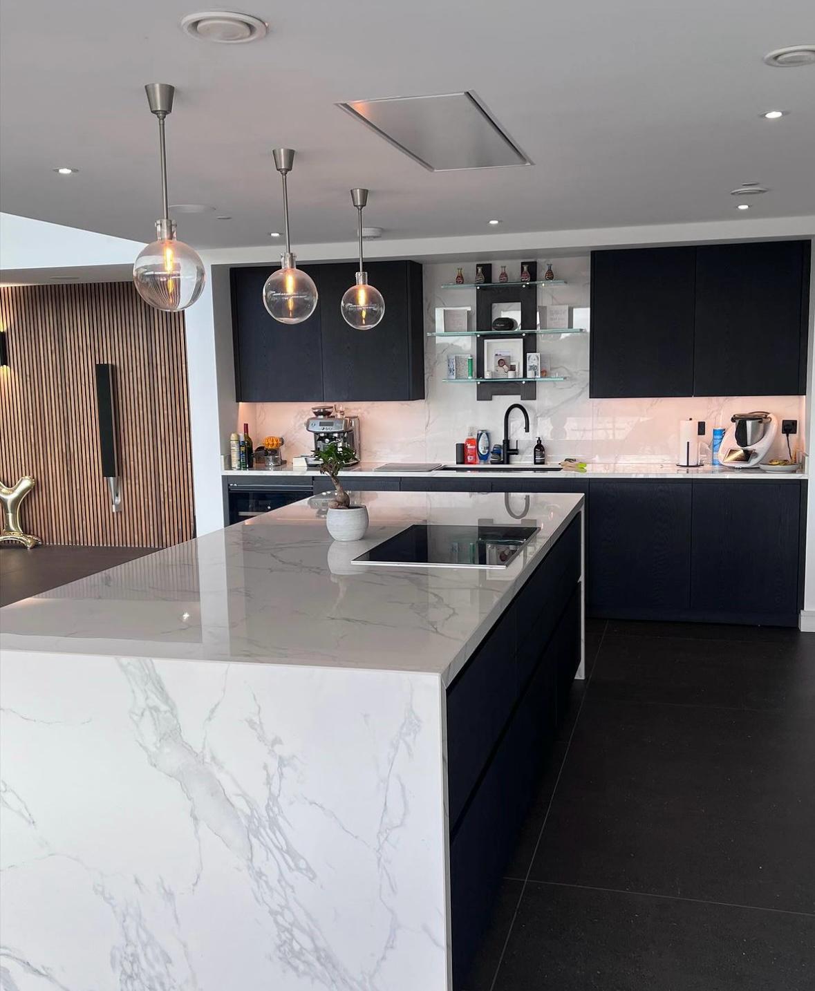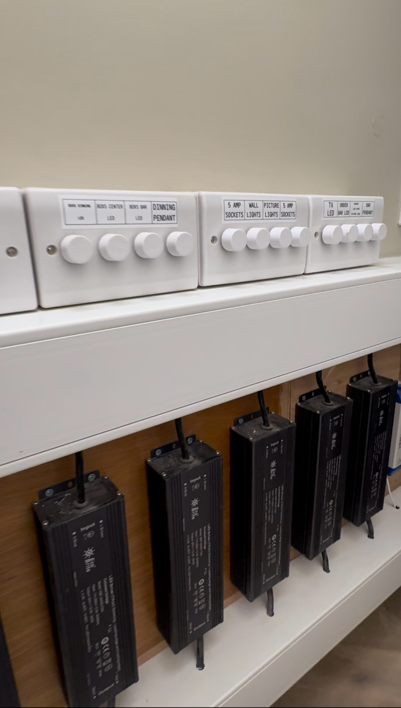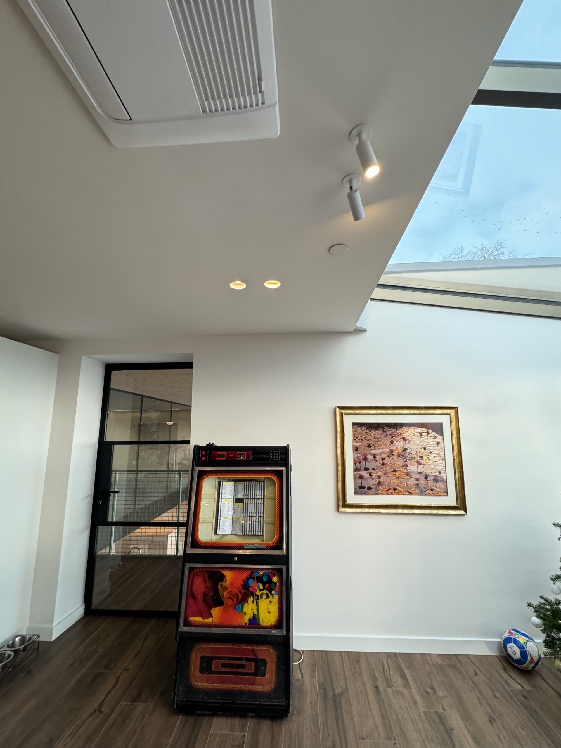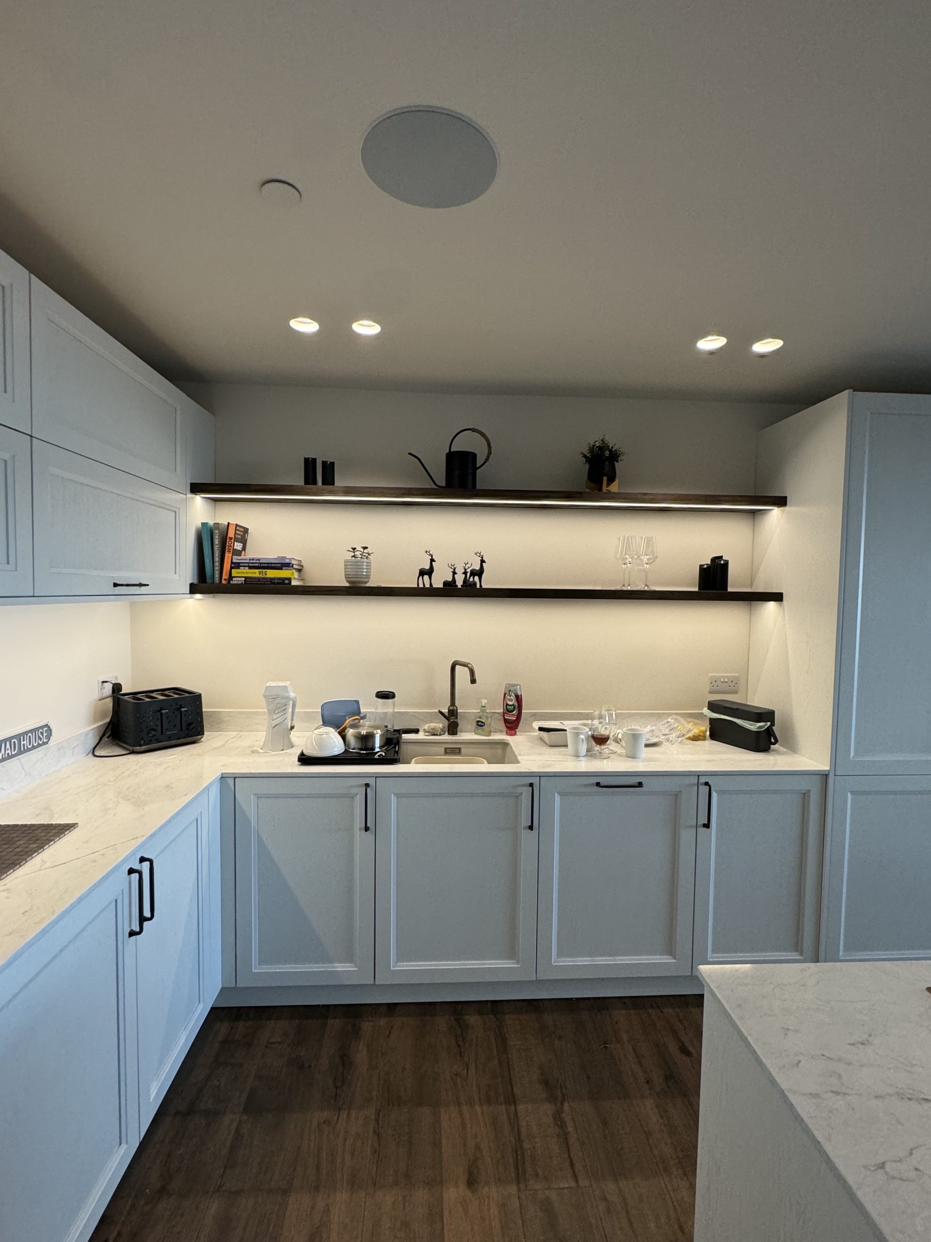We carried out the installation of lighting, power, heating control, data, home wifi network, EV charging, upgrade to the incoming supply for an additional 100amp supply and a new home cinema.