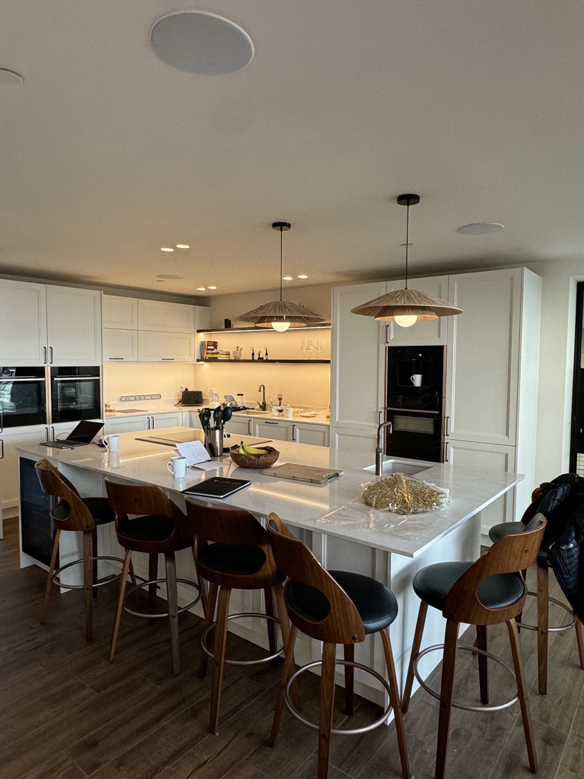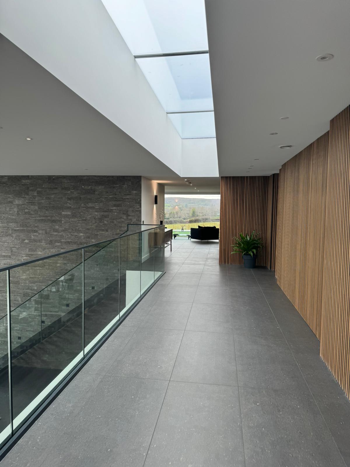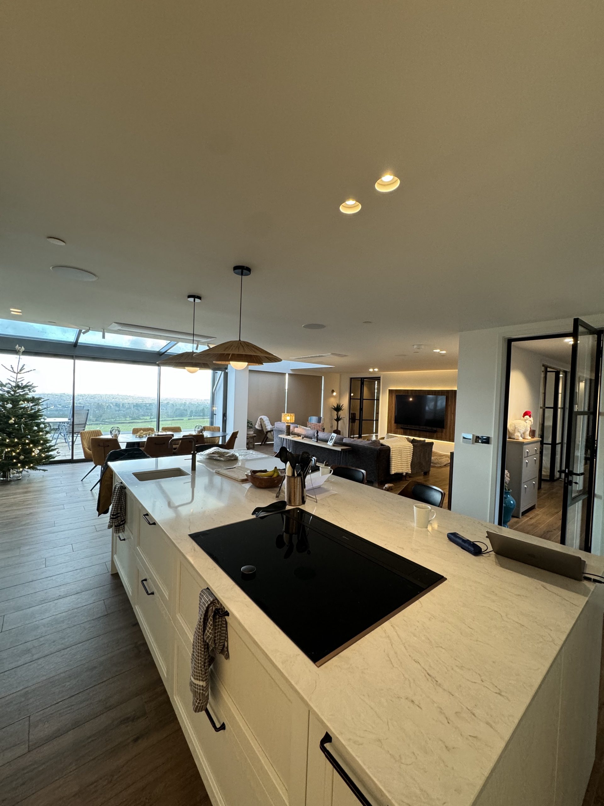 We were trusted with the design and install of the electrical installation. This included the stunning lighting, power, heating control, data and home wifi network, multiroom Audio, EV charging, CCTV and security