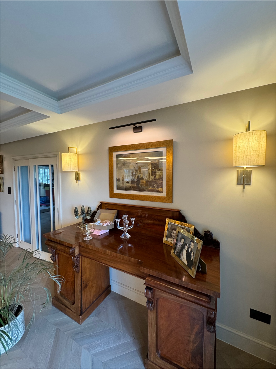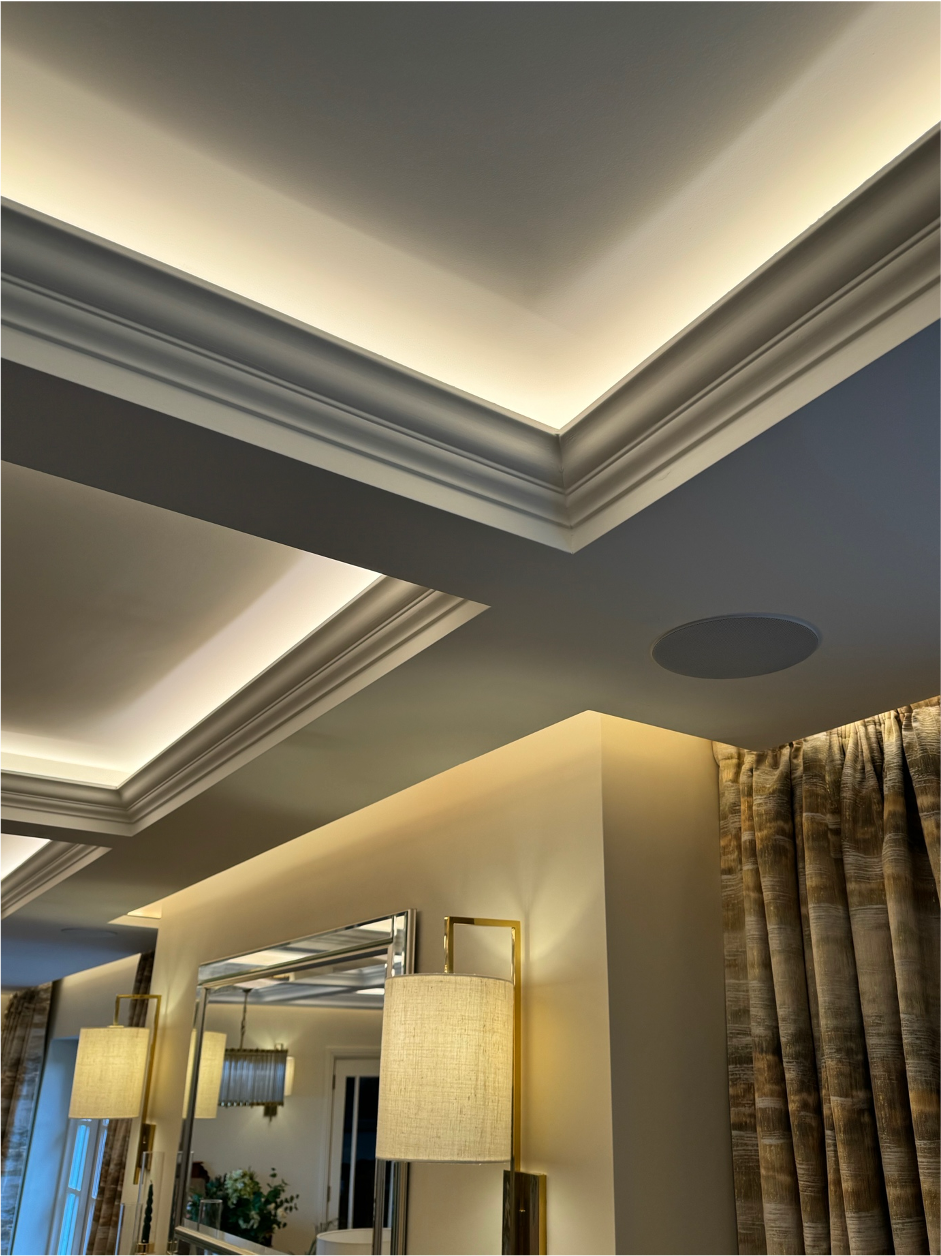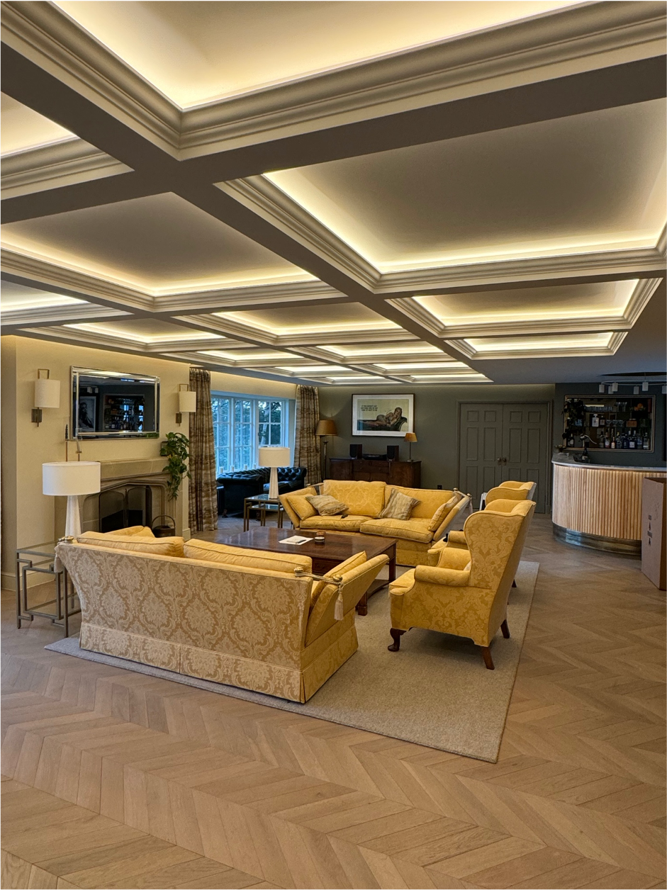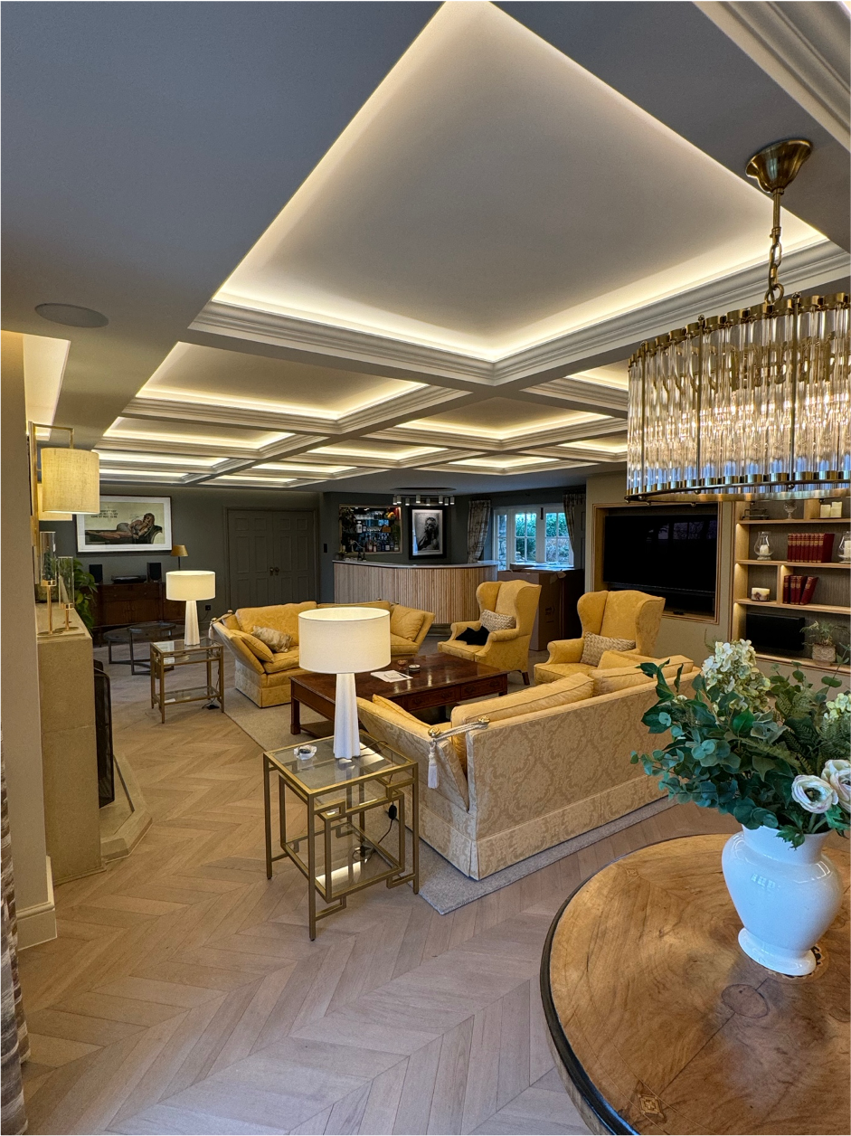 This Elegant entertaining space was completed for a wonderful client who employed award winning interior designer Suzanne Owen of Owen associates to design a room that looks like it came straight out of interior design magazine. When we received the drawings for Suzanne its fair to say we were excited to get started on the amazing lighting plan she had designed. We installed over 130m of LED tape to coffers in the ceiling and furniture.