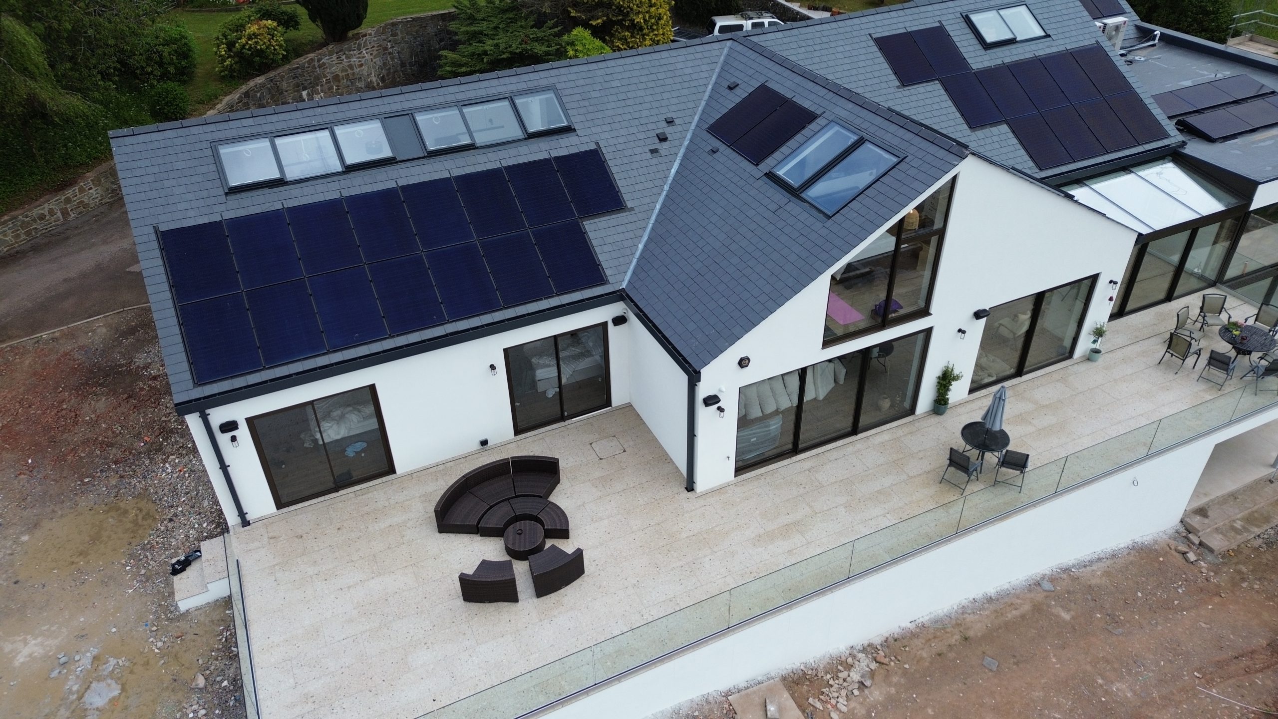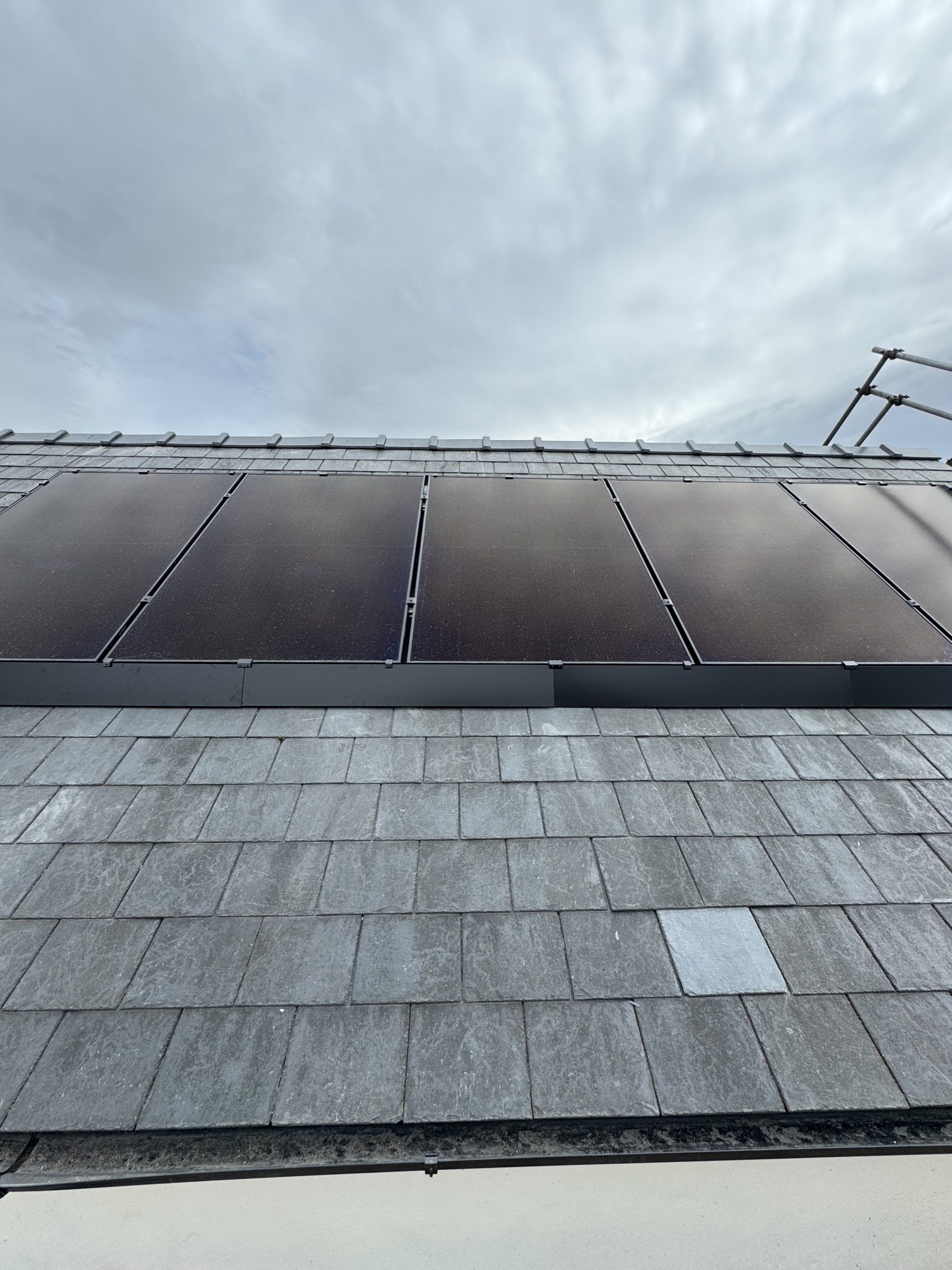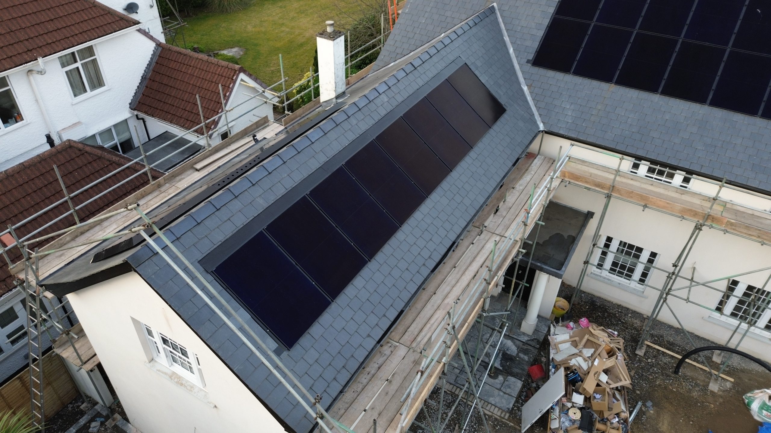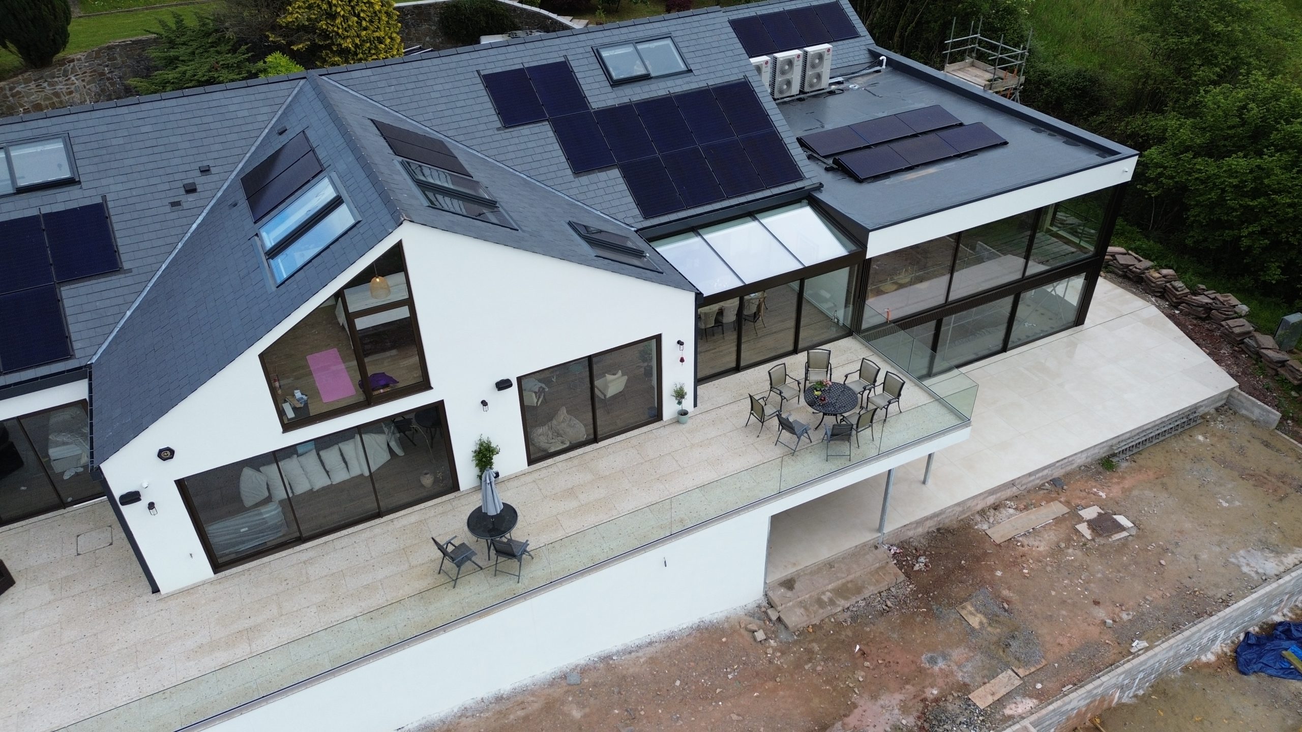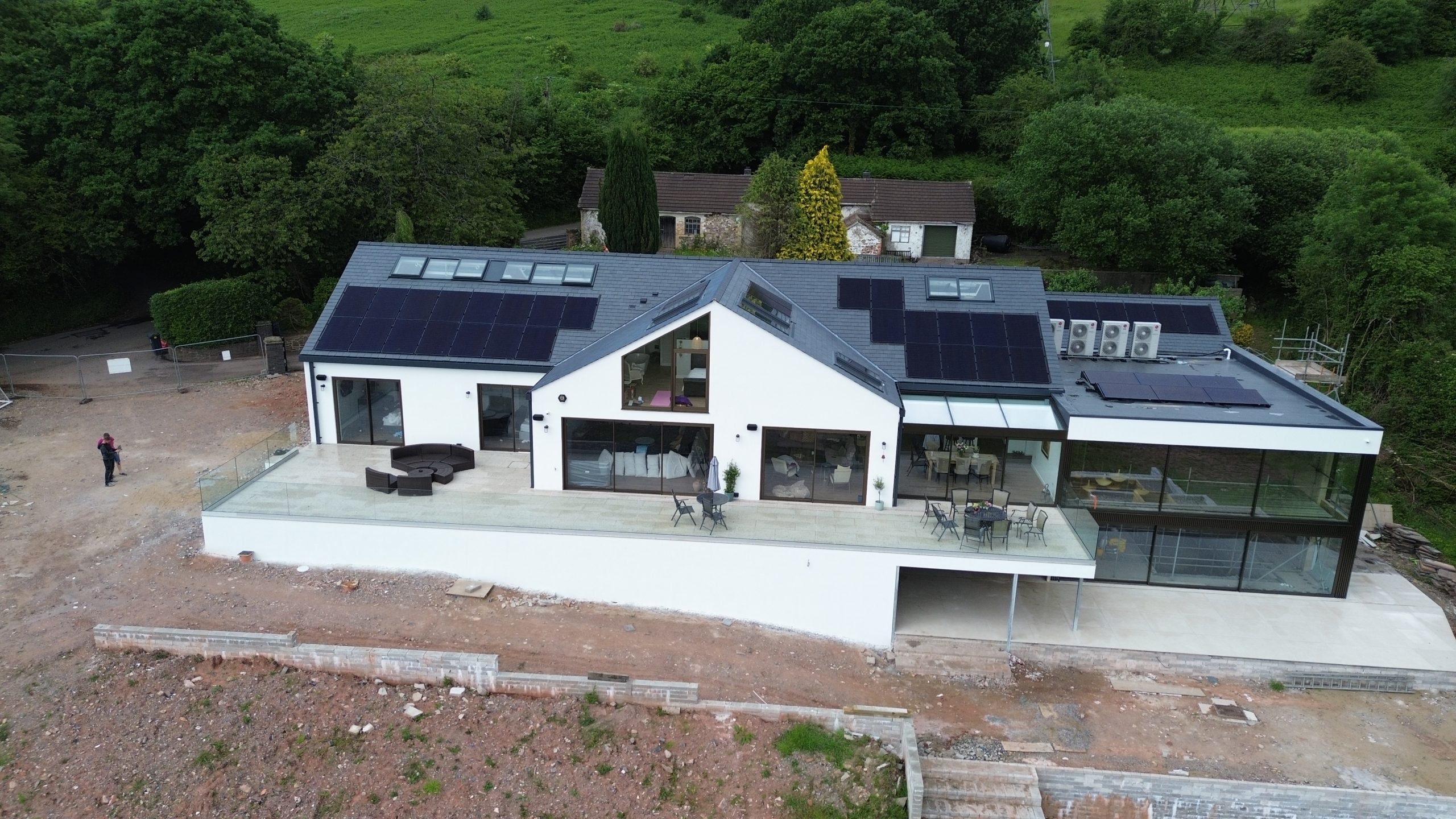 We undertook the renovation of this stunning home in Cyncoed, Cardiff in 2025. We installed a 10KW Solar PV system compromising of In-roof panels at the front of the property and on-roof panels at the rear. The 10KW battery stores any excess energy to use during in the dark hours. We also undertook the full rewiring of the property including lighting, power, Data and WIFI network, CCTV, Intruder alarm, Heating control, Garden lighting scheme and EV charger.