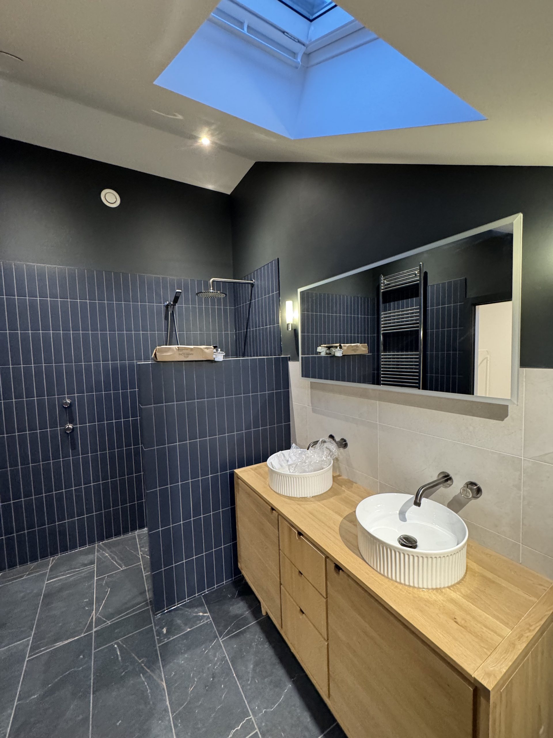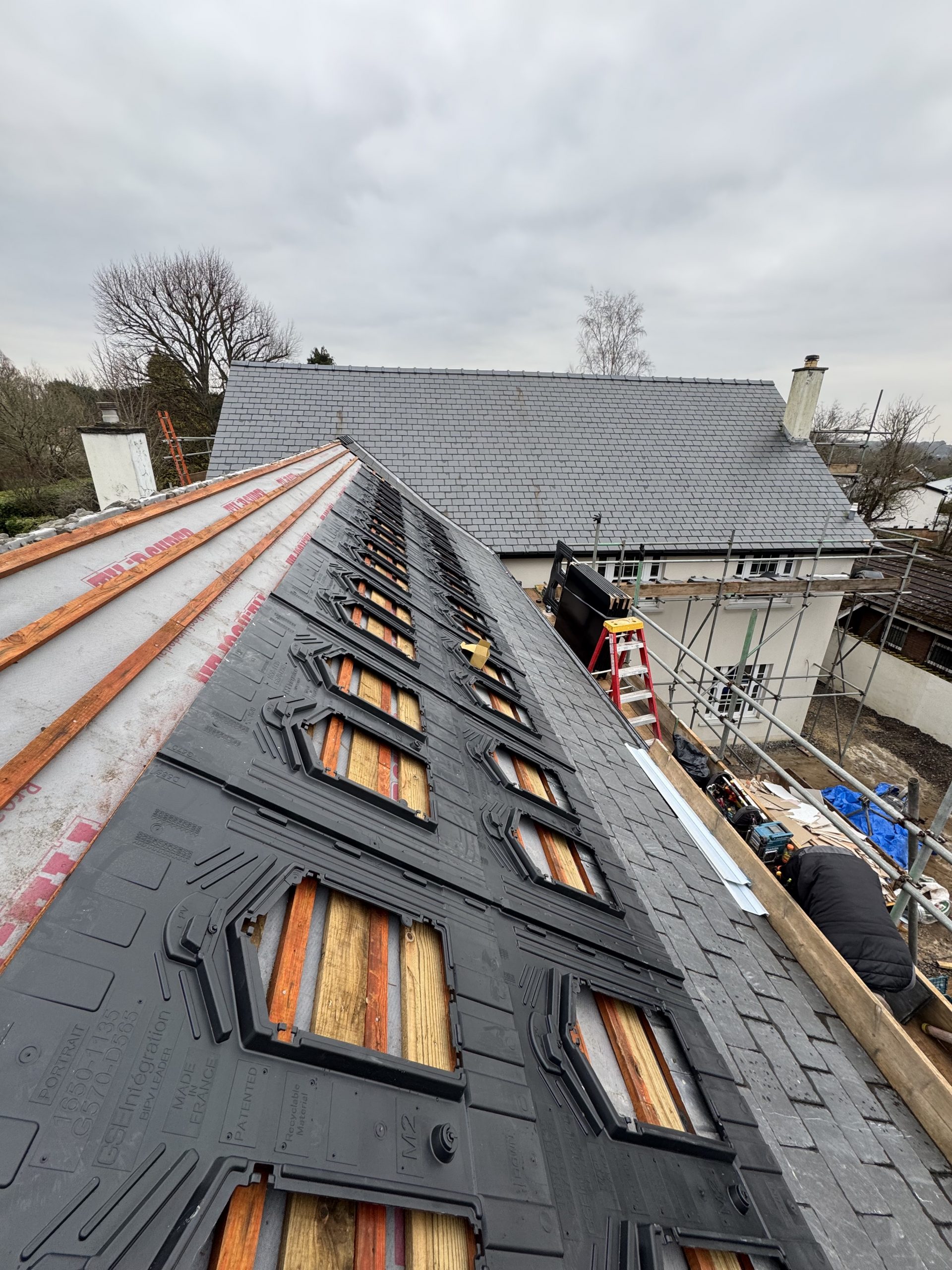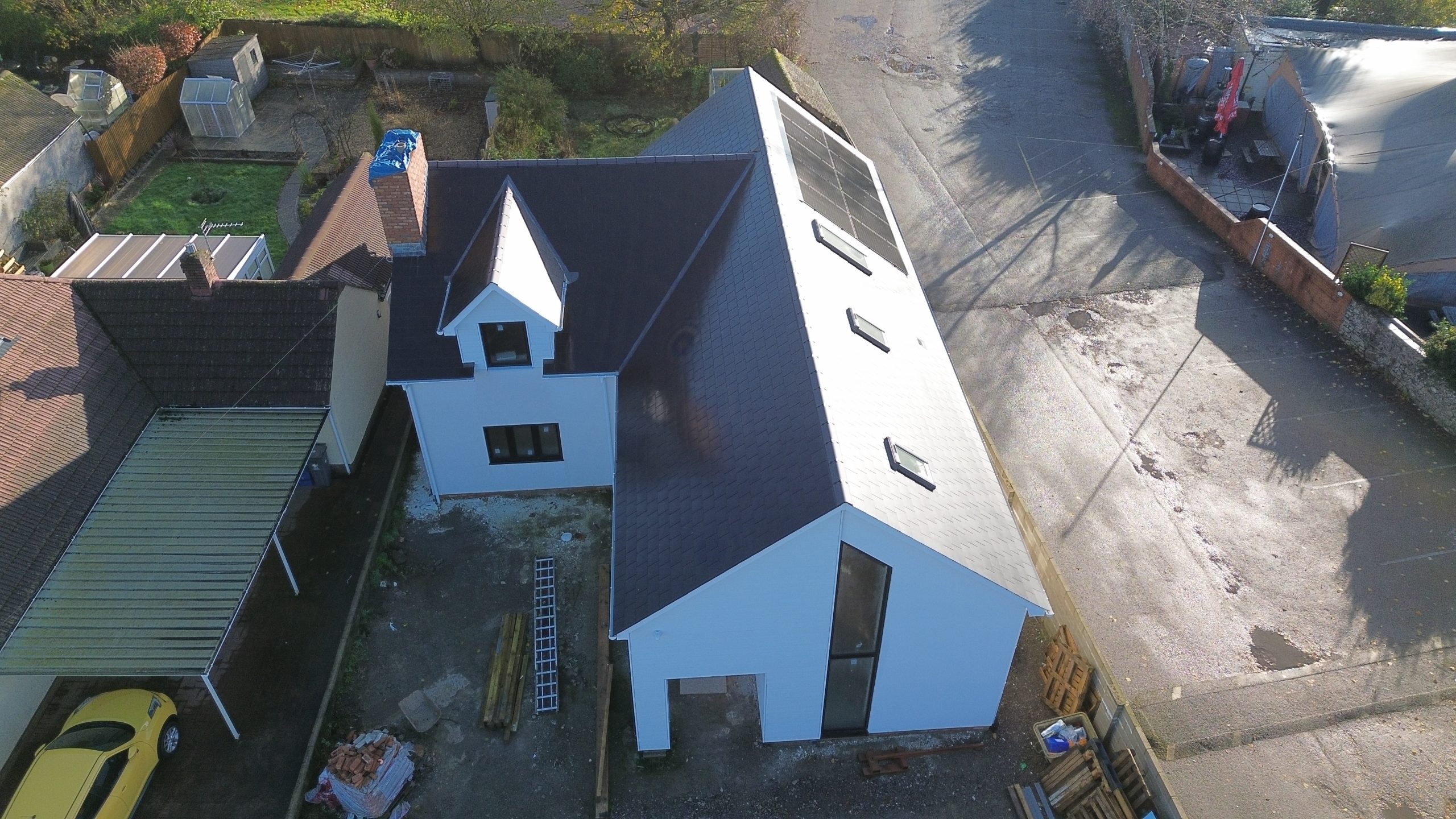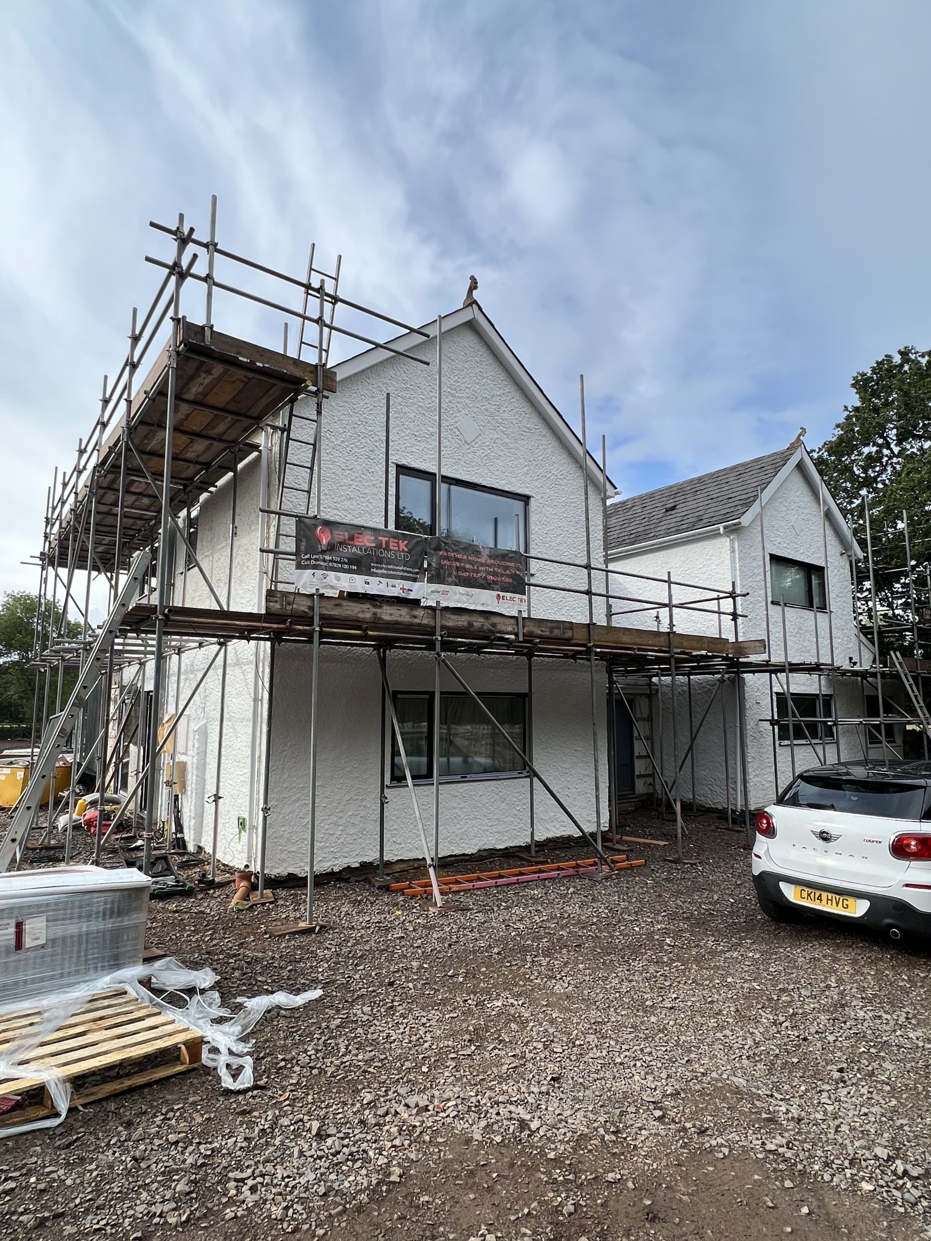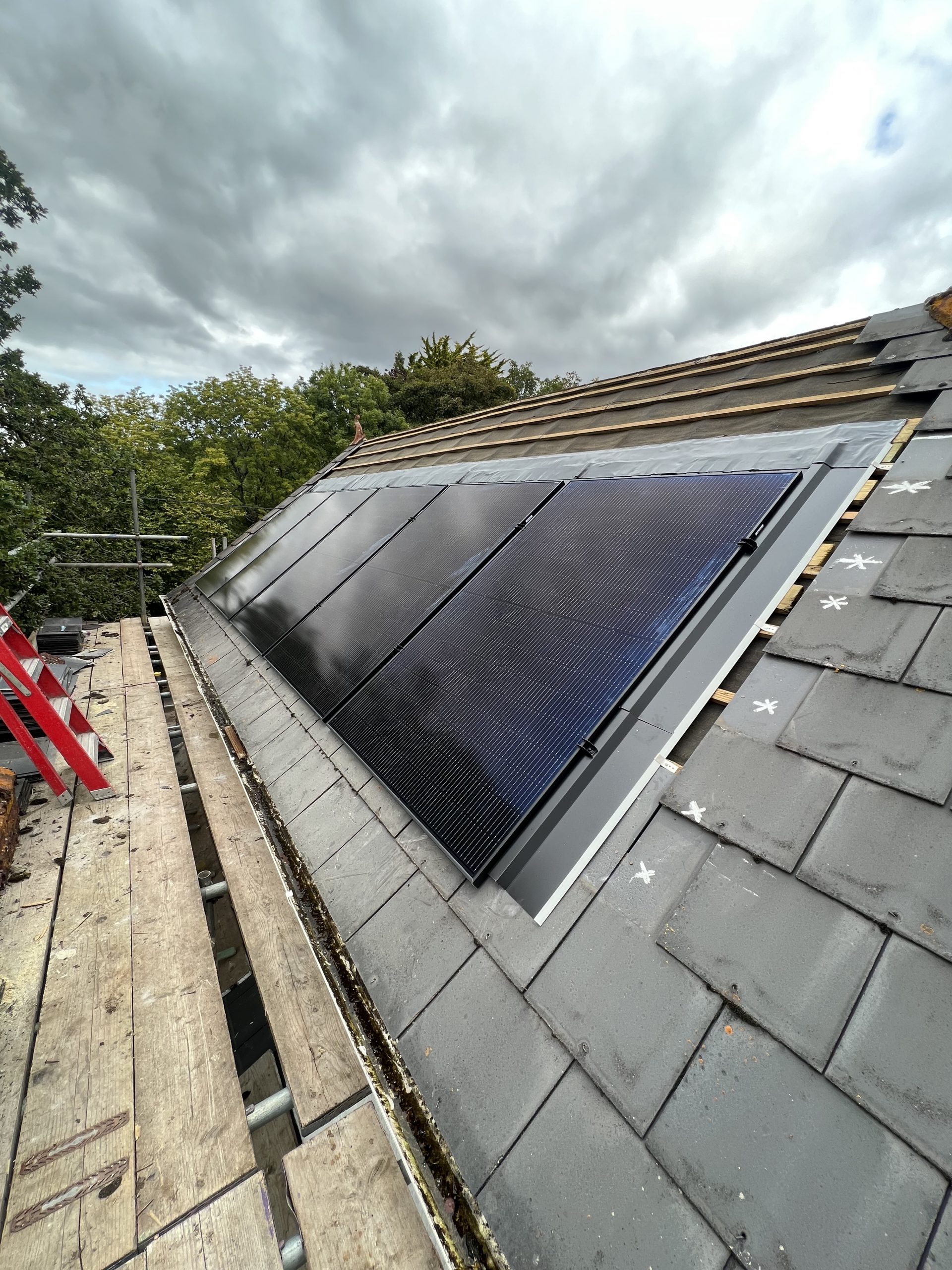 We undertook the renovation of this stunning home in Cyncoed, Cardiff in 2025. We installed a 10KW Solar PV system compromising of In-roof panels at the front of the property and on-roof panels at the rear. The 10KW battery stores any excess energy to use during in the dark hours. We also undertook the full rewiring of the property including lighting, power, Data and WIFI network, CCTV, Intruder alarm, Heating control, Garden lighting scheme and EV charger.